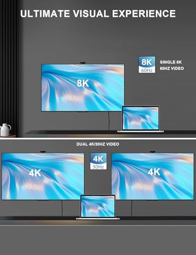 - جودة فيديو فائقة: يدعم دقة 8 كيه المذهلة عند 60 هرتز مع خاصية HDR لإخراج عرض فائق الوضوح، مثالي للتوصيل بالشاشات وأجهزة العرض وأجهزة التلفزيون مع أجهزة USB-C المتوافقة