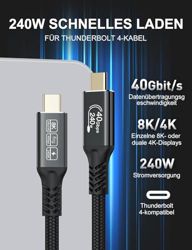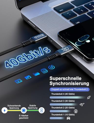 - أداء عالي السرعة: يوفر كابل يو اس بي 4 وثاندربولت 4 المعتمد سرعات نقل بيانات فائقة السرعة 40 جيجابايت في الثانية، مما يسمح لك بنقل الملفات الكبيرة ومقاطع الفيديو والصور في ثوانٍ
