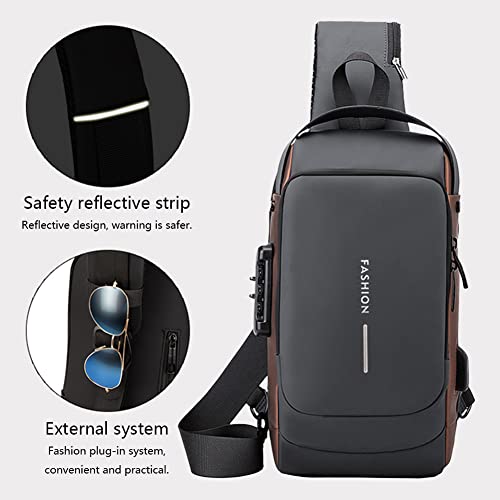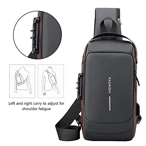 Cessfle - شنطة كتف رياضية مضادة للسرقة بشحن USB مقاومة للماء ومضادة شنط كروس يومية للصدر لون رمادي حقائب ظهر للبالغين من الجنسين