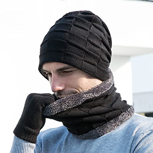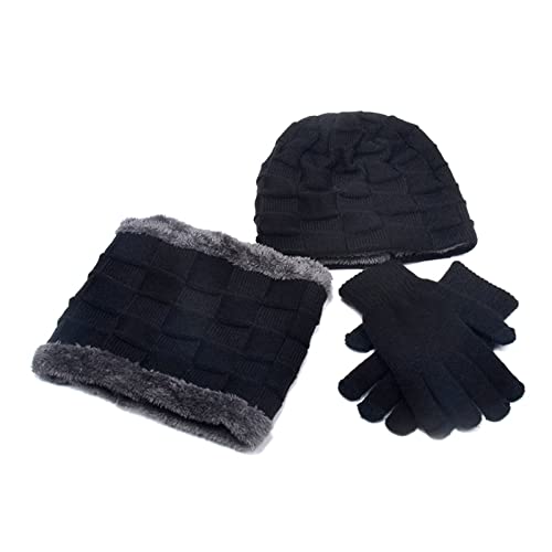 CFJB - قبعة صغيرة شتوية للرجال والنساء من سي اف جيه بي، وشاح وقفازات محبوكة، مجموعة من 3 قبعات محبوكة لتدفئة الرقبة وقفازات محبوكة مخملية للجنسين، قبعة ووشاح وقناع محبوك مقاوم للرياح