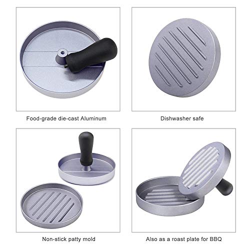 - قالب برجر تقليدي: صُنعت أداة صنع البرجر من الألومنيوم المصبوب الآمن غذائيًا، متينة وتتكون من ختم وطبق فطيرة، قطر الفطيرة 11.8 سم، مناسبة للفطائر التي تزن من 100 إلى 150 جم.