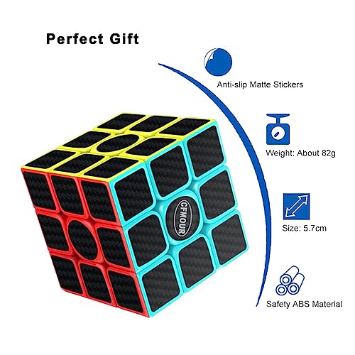 cfmour - مكعب سرعة 3×3×3 من ألياف الكربون من سي اف ماور، لون أسود (عبوة من قطعتين)