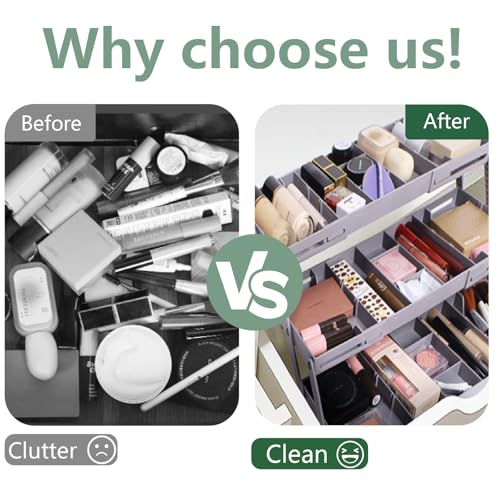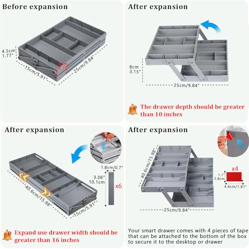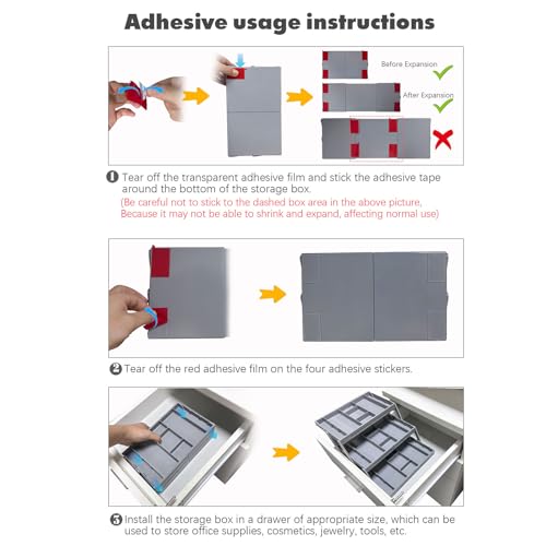 - مريح وسهل الاستخدام - منظم الأدراج القابل للطي هذا مجمع بالفعل، ويمكنك توسيع مساحة أكبر لأعلى أو على كلا الجانبين وفقًا لاحتياجاتك. يوفر القسم القابل للتعديل الراحة لك. اجعل الأدراج الذكية شريكك في المكتب