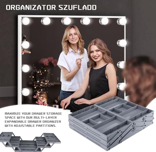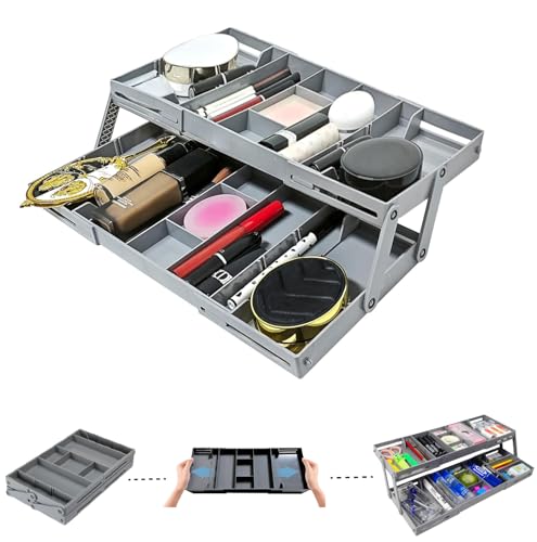 CGD - منظم أدراج ذكي، منظم مكتب قابل للطي والتوسيع من 2/3 طبقات مع مساحات تخزين قابلة للتعديل للمجوهرات ومستحضرات التجميل والمكتب والمطبخ من سي جي دي (صف واحد بطبقة مزدوجة)، لون رمادي