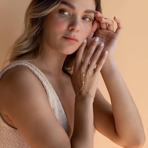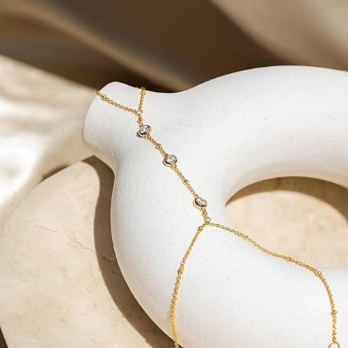 Generic - سلسلة زينة - مجموعة مميزة تتضمن سوار سلسلة يد ذهبية وأحجار كريستال وسلسلة خاتم إصبع رقيقة بطول قابل للتعديل لتصميم متعدد الاستخدامات