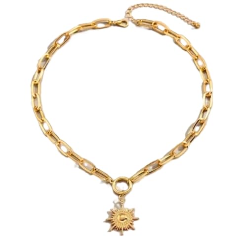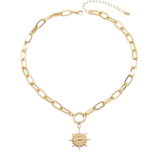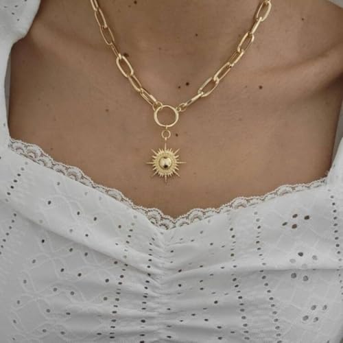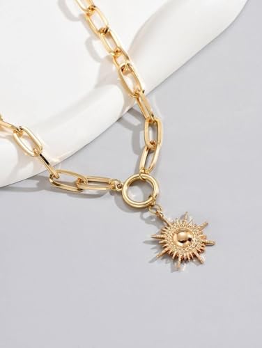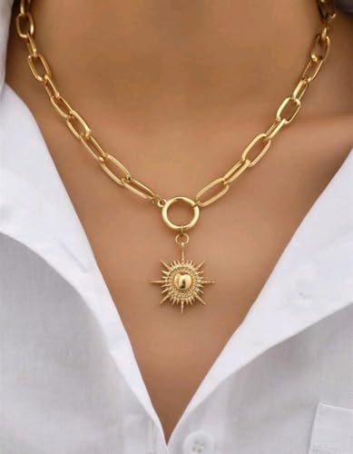 Generic - سلسلة للنساء قلادة شمسية عصرية بتصميم ريترو قطعة واحدة اللون: ذهبي أصفر