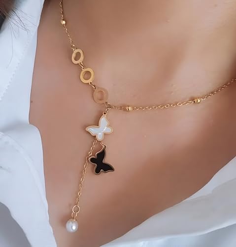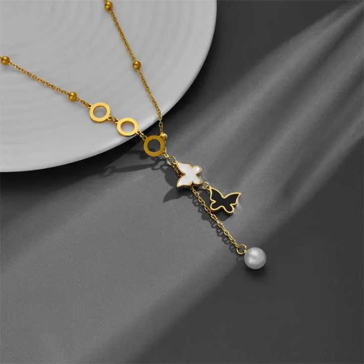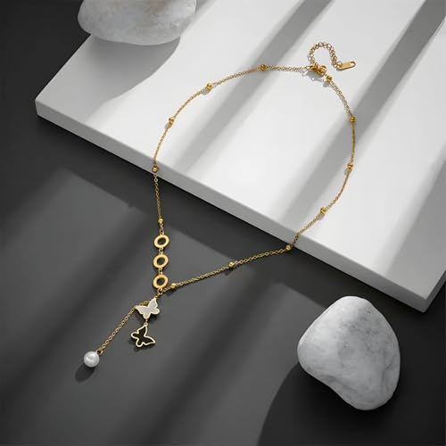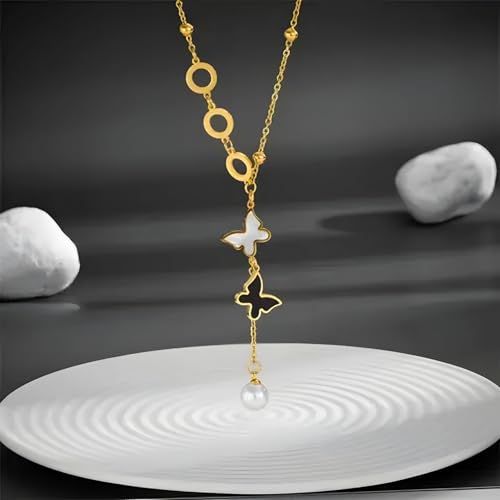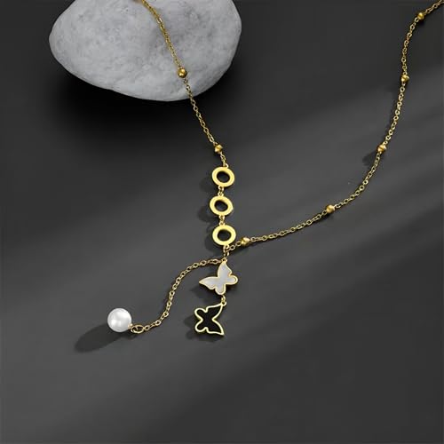 Generic - سلسلة قلادة أنيقة استانلس ذهبية اللون مع قلادة فراشة، مجوهرات نسائية عصرية، مع حلقات دائرية