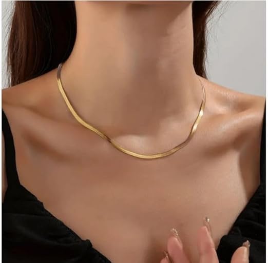 Generic - سلسلة عقد نسائية ذهبية أنيقة، تصميم ثعبان ، معدن مطلي بالذهب ، إكسسوا عصري للمناسبات والهدايا