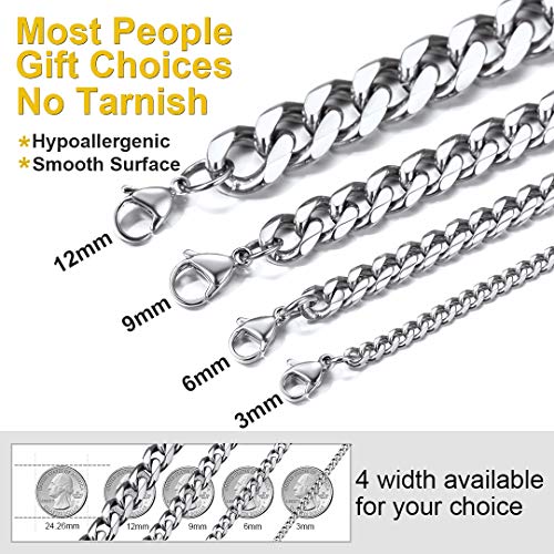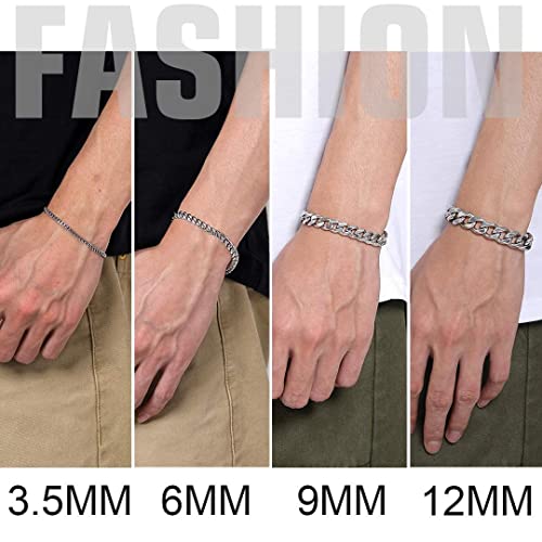 ChainsHouse - تشينز هاوس سوار سلسلة كوبي 3/6/9/12 ملم، 16/19 سم، مجوهرات للرجال والنساء من الستانلس ستيل
