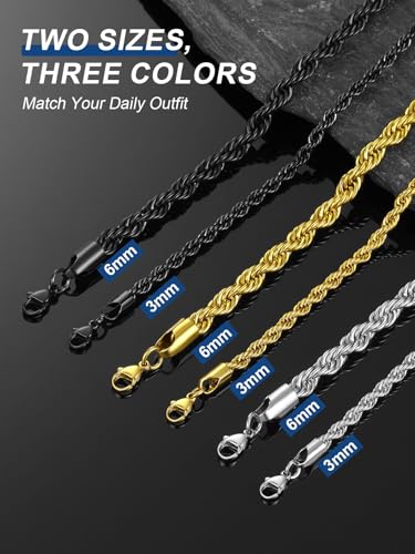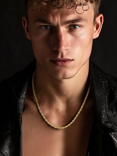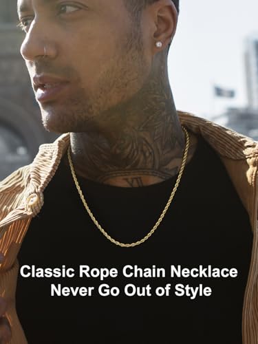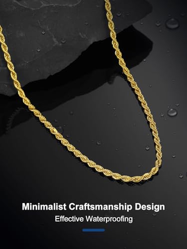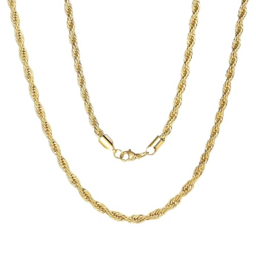 ChainsPro - شاينز برو سلسلة حبل ملتف 3/6 ملم، سلسلة بديلة للقلادة/الدلاية، 18-30 انش، ستانلس ستيل 316L، مطلية بالذهب عيار 18 قيراط، صندوق هدايا