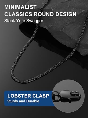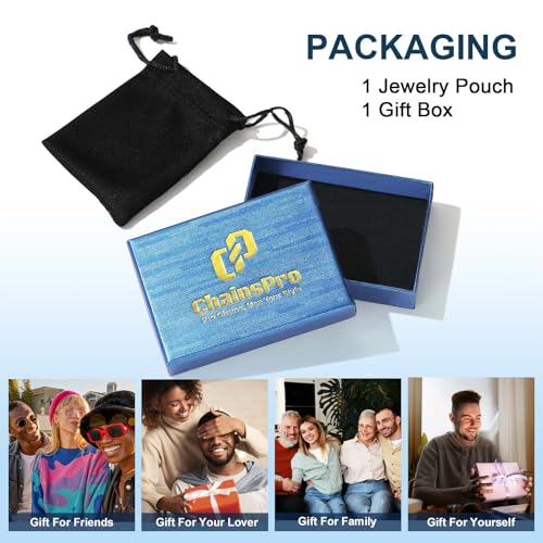 ChainsPro - شاينز برو سلسلة بحلقات كوبية 3/4/6/9/12 ملم، 14/18/22/24/26/28/30 انش، ستانلس ستيل 316L / مطلي بالذهب عيار 18 قيراط/اسود - صندوق هدايا معدني، الأولاد، للنساء، للرجال
