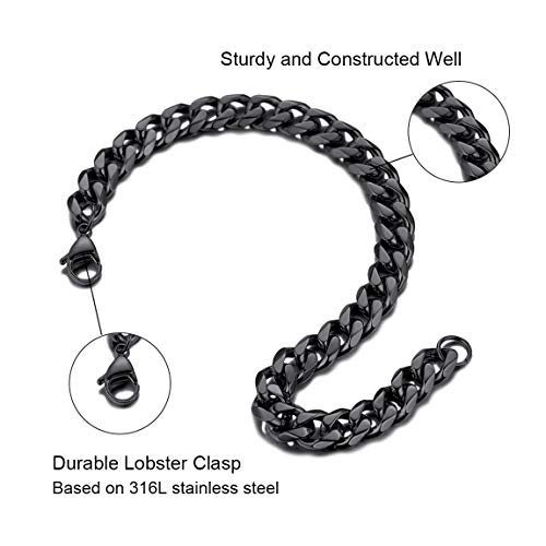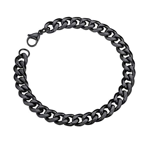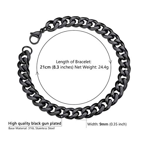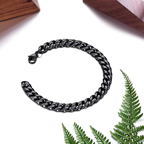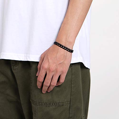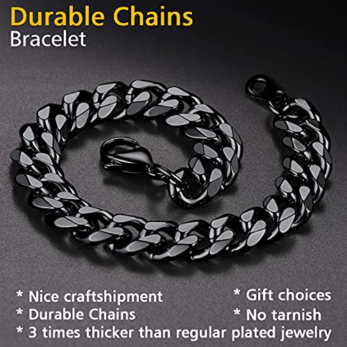 ChainsPro - سلسلة سوار كوبية للرجال من تشينزبرو، عرض 3/6/9/12 ملم، طول 19/21 سم، مطلية بالذهب عيار 18، ستانلس ستيل 316L، اسود مع علبة هدايا, معدن