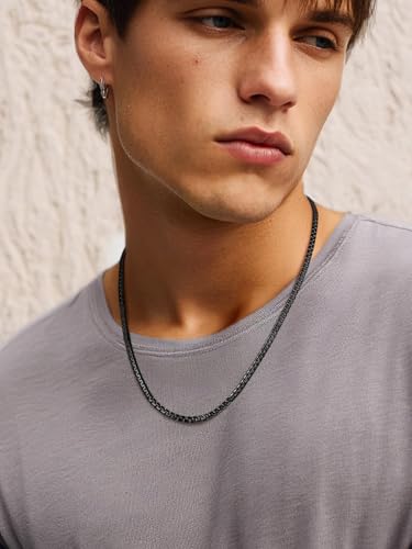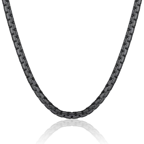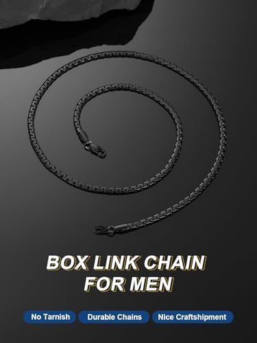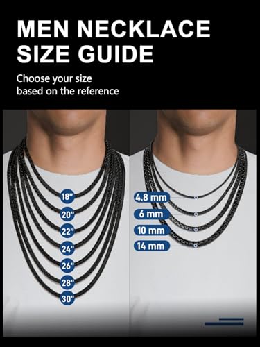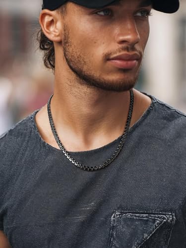 ChainsPro - شاينز برو سلسلة بحلقات كوبية 3 - 4 - 6 - 9 - 12 ملم 14 - 18 - 22 - 24 - 26 - 28 - 30 انش ستانلس ستيل 316L - مطلي بالذهب عيار قيراط - اسود - صندوق هدايا طول × عرض معدن للرجال للنساء الأولاد