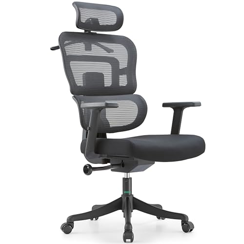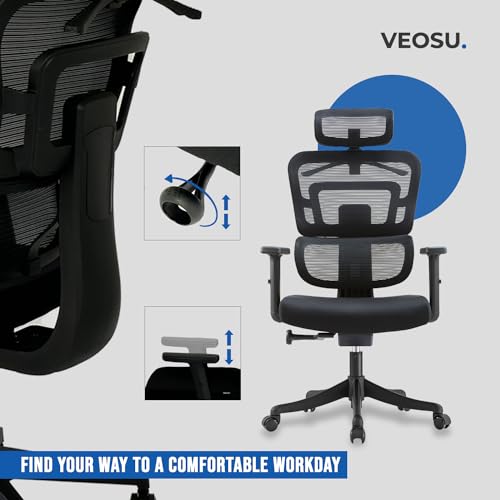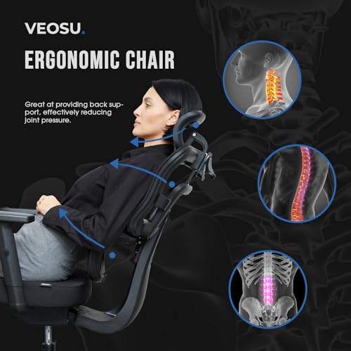 VEOSU - كرسي مكتب مريح من فيوسو، العاب عالي الظهر، كبير وطويل مع دعم قطني ومساند ذراع قابلة للتعديل شبكة جيدة التهوية على عجلات دوارة، أسود