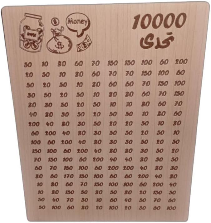 - حصالة تشالنج 10000 خشبية لادخار المال وتحفيزك.