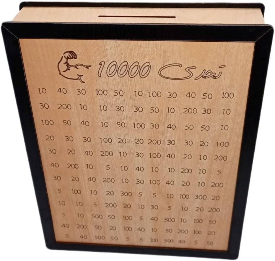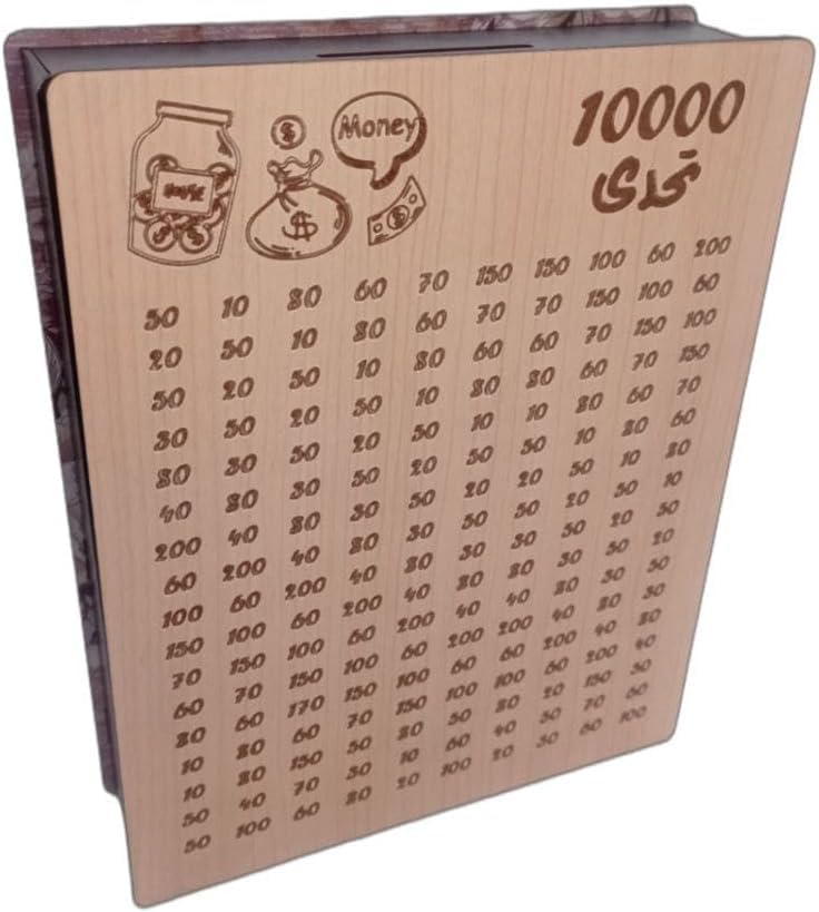 - حصالة تحدي التوفير - حصالة خشبية فاخرة بتصميم يحفزك للوصول إلى 10000 جنيه، مناسبة للأطفال والكبار ويمكنها جمع عشرة آلاف جنيه.
