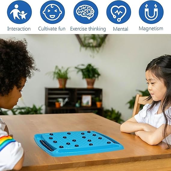 - تصميم ذكي يعمل كلوحة لعب وصندوق تخزين: تتميز اللوحة المقعرة بقدرتها على احتواء جميع القطع الكروية داخلها بعد الانتهاء، مما يسهل عملية الترتيب اليومي ويحافظ على نظام الغرفة ويمنع فقدان أي جزء من اللعبة.