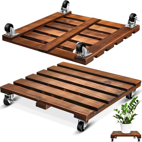 CHAMSUREUK - حامل نباتات خشبي دائري مع عجلات معدنية قابلة للقفل، حامل نباتات دوار متين للأماكن الداخلية والخارجية من شامسوريك، عبوة من قطعتين، قطر 30 سم