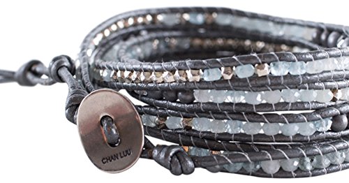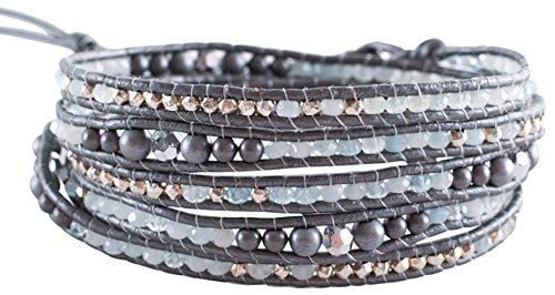 Chan Luu - تشان لو سوار ملتف من الجلد بلون رمادي مرصع بالهيماتين وكريستالات اكوامارين، للنساء