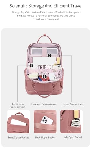 Chantria - شنطة ظهر كاجوال انيقة للنساء من شانتريا بسعة 13 لتر، شنطة ظهر صغيرة تناسب لابتوب 15.6 انش، شنطة ظهر صغيرة من البوليستر بجيوب متعددة للمكتب الكاجوال والتسوق -CB00628-بيج