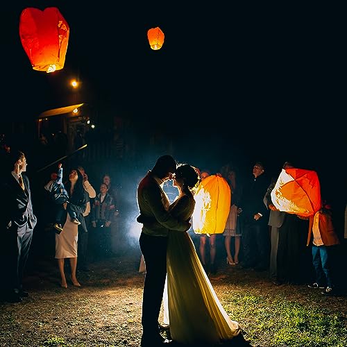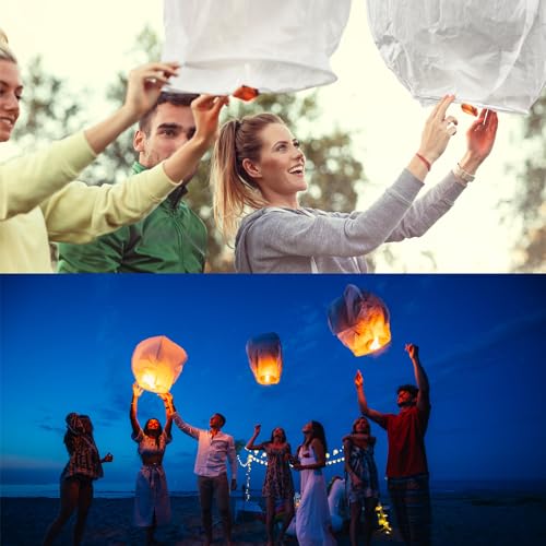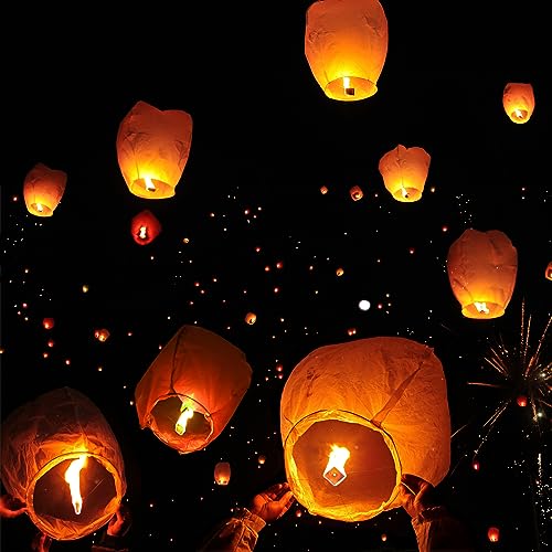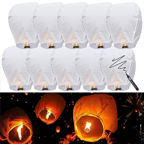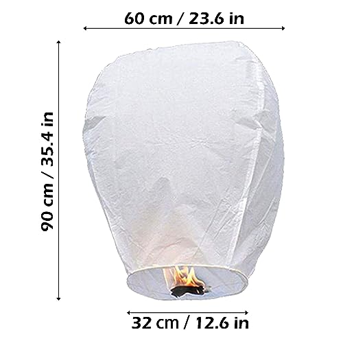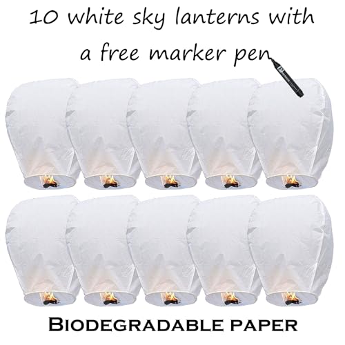 CHAO LA - فوانيس سماء صينية قابلة للتحلل البيولوجي بنسبة 100% (10 قطع)، فوانيس طائرة خارجية صديقة للبيئة مناسبة لحفلات الزفاف والذكرى السنوية وغيرها من المناسبات، أبيض