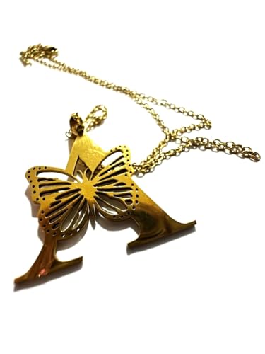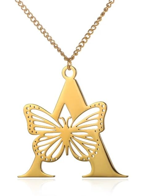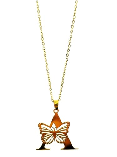 Generic - عقد على شكل فراشة على شكل حرف (A) - لون ذهبي، مقاس 40 سم، ستانلس ستيل لجميع المناسبات للنساء