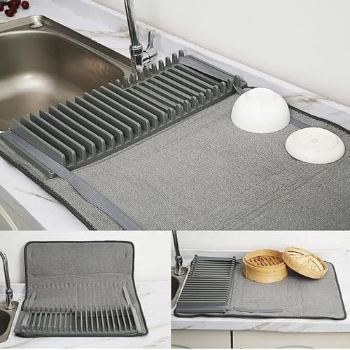Generic - سجادة تجفيف الأطباق من المايكروفايبر بلون فحمي، بحجم 66×46 سم، تصميم خفيف الوزن قابل للطي، موفر للمساحة، مزودة بمنظم عملي للأطباق، مع خامة ميكروفايبر ثقيلة لامتصاص المياه بفعالية