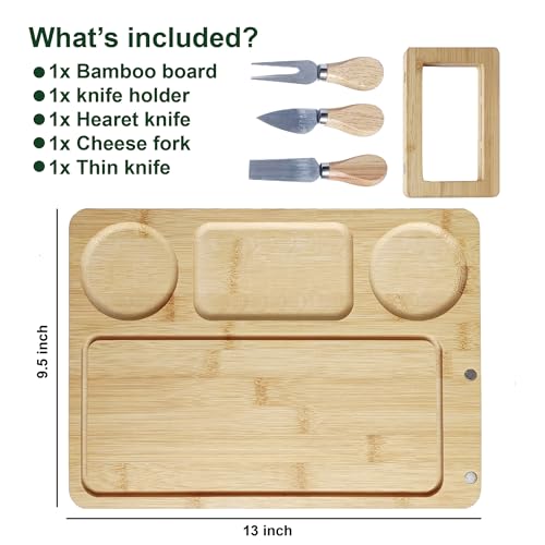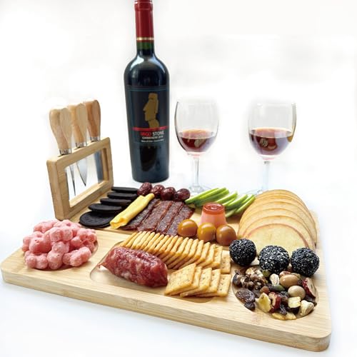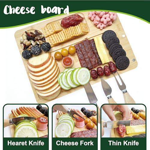 Yolobcrafts - مجموعة هدايا من تشاركوتيري، مجموعة الواح الجبن من الخيزران وصينية تقديم، مجموعة الواح تشاركوتيري هدايا فريدة للامهات - هدايا تدفئة منزل جديد، هدايا زفاف للازواج، هدية حفل زفاف