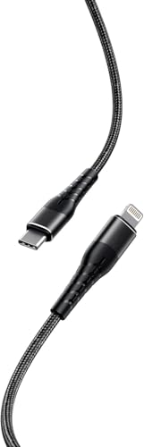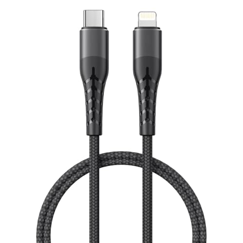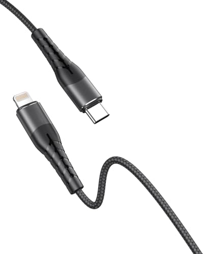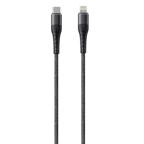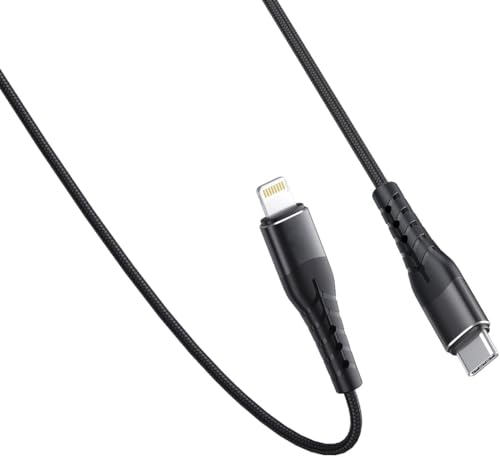 Generic - كابل شحن للهواتف 1.2 متر 30 واط ، كابل مجدول من النايلون، USB-C إلى Lightning، أسود، مقاوم للكسر