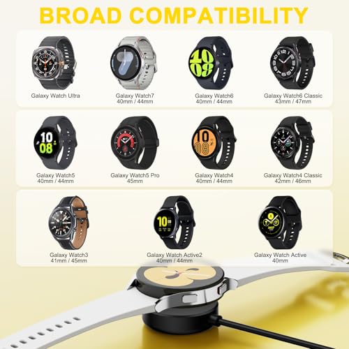 NENASEW - كيبل شحن USB C متوافق مع ساعة سامسونج جالكسي 7 / الترا / 6 / 6 كلاسيك / 5 / 5 برو / 4/4 كلاسيك / 3 / اكتيف 1/2 / اف اي، قاعدة شحن تي بي واي سي للساعة الذكية جالكسي مع محول USB واحد