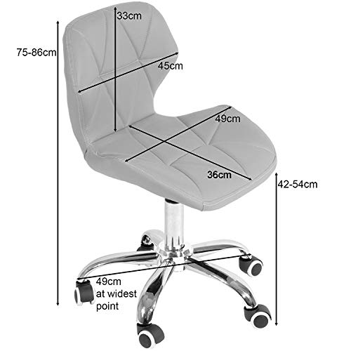 - الأبعاد: إجمالي الطول: 75-86 سم - عرض المقعد: 49 سم - عمق المقعد: 38 سم - ارتفاع المقعد: 42-54 سم - ارتفاع مسند الظهر: 33 سم - عرض مسند الظهر: 45 سم - عرض القاعدة: 49 سم.