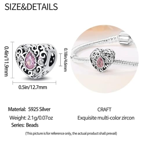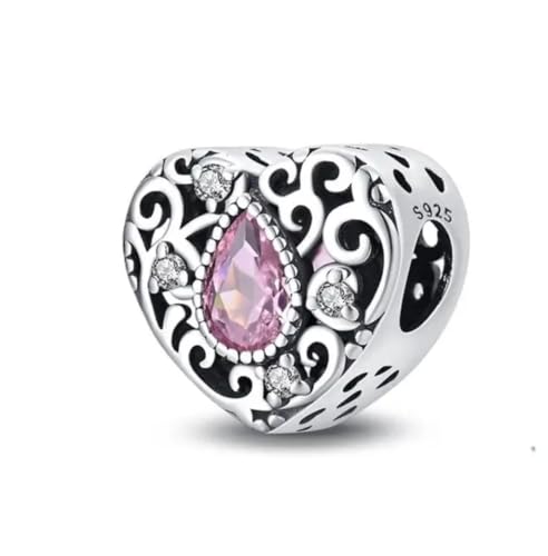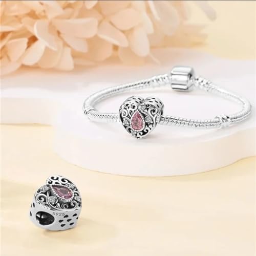Generic - دلاية فضة استرليني 925 - قلب مزخرف و به دمعة وردية - انيقة و جميلة مرصعة بالكريستال الوردي - متوافقة مع اساور و سلاسل الباندورا و العادية