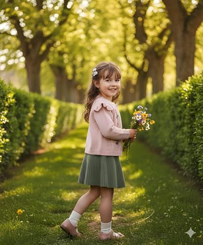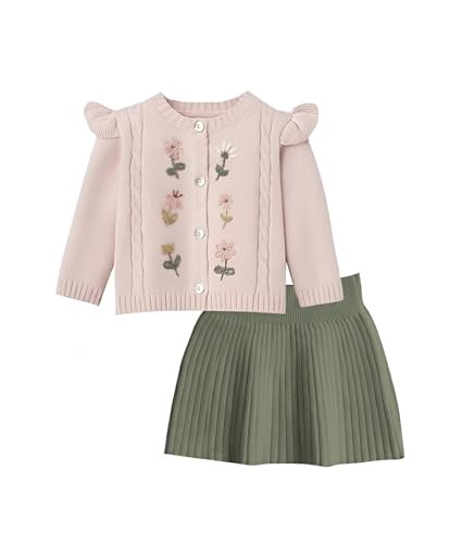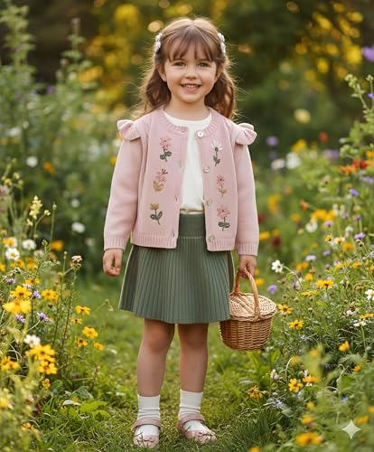Generic - كارديجان تشارم - طقم ملابس اطفال لولي بوب مطرز للبنات من سن 4 الى 12 سنة، بيج وبينك