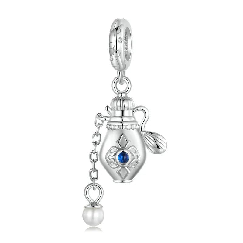 Generic - تعليقة "زجاجة عطر" من الفضة الإسترليني عيار 925، مزينة بحجر زركون أزرق لامع وسلسلة متدلية رقيقة قطعة عصرية تعكس الأنوثة والسحر،