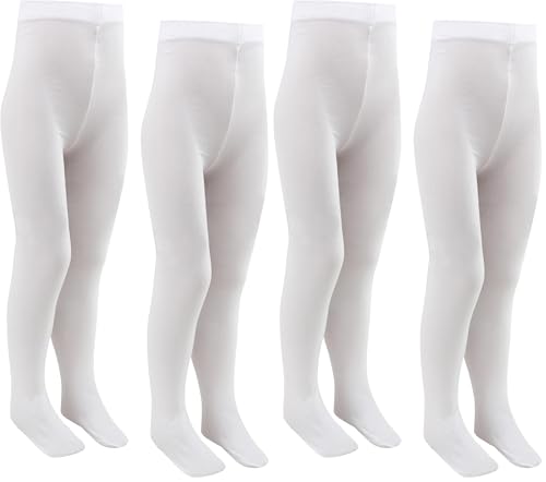 Charmaine - شارمين بناطيل ضيقة سادة للبنات، ابيض، 3 ازواج في كل عبوة، مقاس 3-4 سنوات (عبوة من قطعتين)
