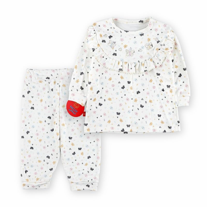 Generic - بيجامة اطفال بطبعة فراشة ساحرة | بيجامة ناعمة بحواف مكشكشة، مقاس 6-9 اشهر