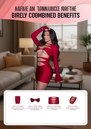 Generic - تشارمينج ميني - فستان حفلات باكمام طويلة للنساء مع فتحات انيقة، متوفر بدرجات نابضة بالحياة، مجسمات جذابة بمقاس واحد مرن من 55 كجم الى 85 كجم
