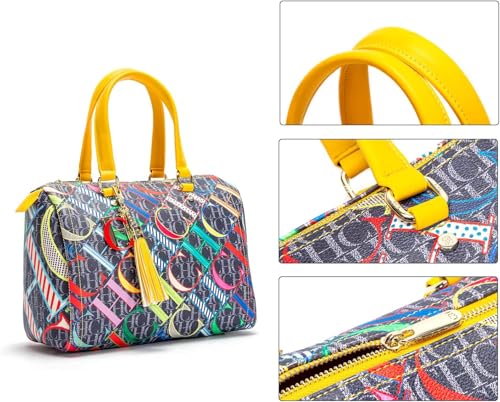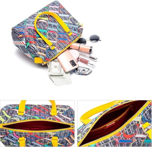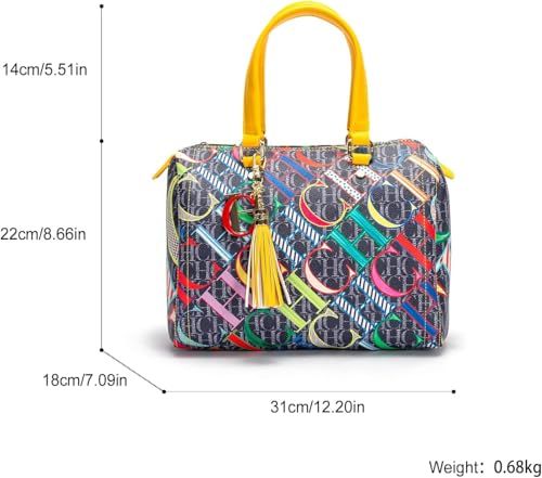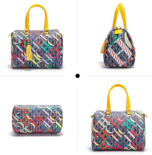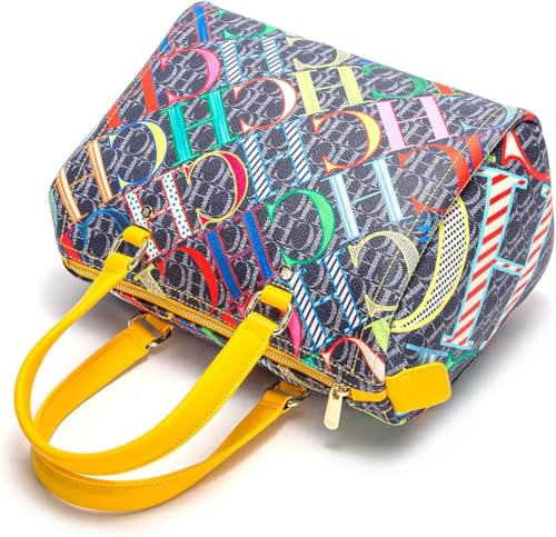 Generic - شنطة يد بوسطن للنساء من سي اتش سي اتش دي اي او اس ايه بتصميم كاجوال مطبوع عليها حروف ملونة مناسبة للسفر والحفلات والعطلات