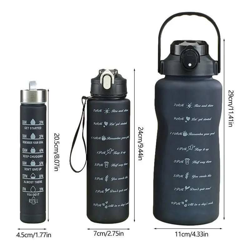 Generic - تشكو ديزاين - طقم زجاجات المياه الرقمية (لترندي وصل) 🌟🚰 يحتوي على: زجاجة جامبو 2 لتر، 1 لتر، نصف لتر مع غطاء استالس ومقبض ل - من جينيريك