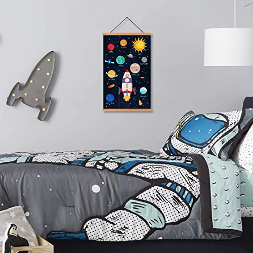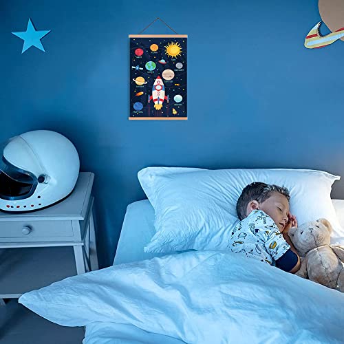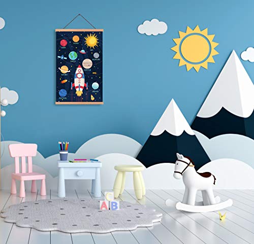 CHDITB - سي اتش دي اي تي بي لوحة فنية مطبوعة على شكل كوكب كرتوني مغناطيسي من الخشب الطبيعي قماشية ملونة مقاس 28 × 45 سم لتزيين غرفة الاطفال والحضانة والفصول الدراسية