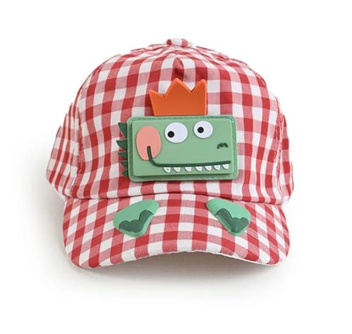 Generic - طاقية بتصميم ديناصور بنقش مربعات للأطفال، لون أحمر وأبيض