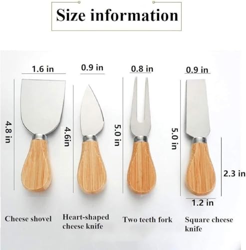 Generic - مجموعة ادوات لوح الجبن: 4 سكاكين جبن من الستانلس ستيل بمقابض خشبية لاطباق الحفلات المثالية وعرض طاولة الطعام