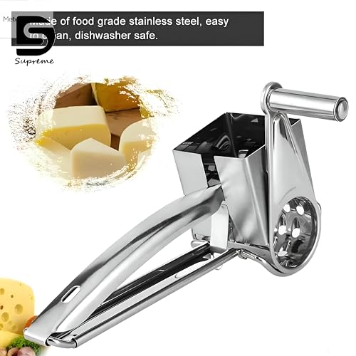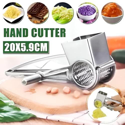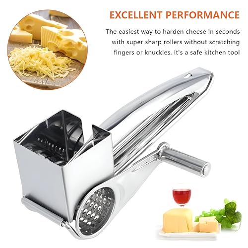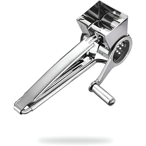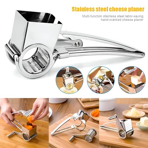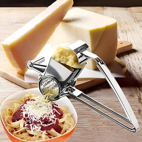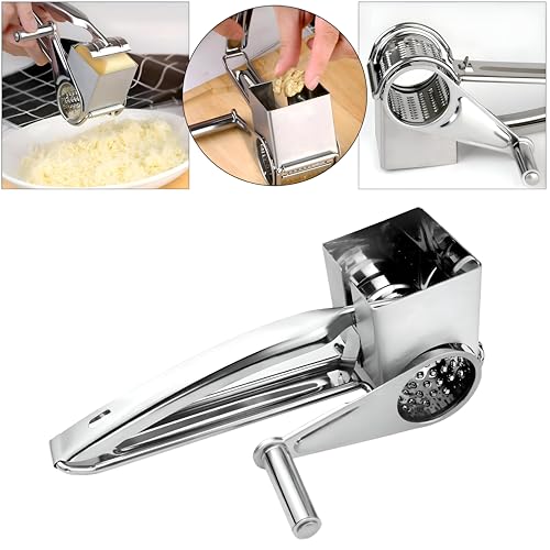 Generic - مبشةر جبن دوارة متعددة الاستخدامات من الفولاذ المقاوم للصدأ للبارميزان والخضروات والشوكولاتة والمزيد، محمولة سهلة التنظيف بلون فضي