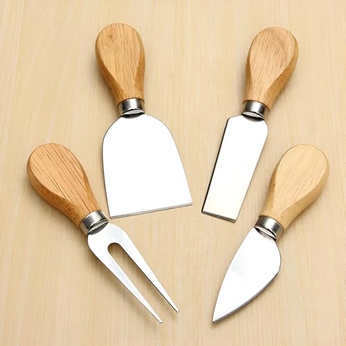 Generic - مجموعة مكونة من 4 قطع من سكاكين الجبن، تتضمن سكاكين الجبن والخبز، مصممة بمقابض خشبية وفولاذ مقاوم للصدأ لتحقيق دقة القطع وكفاءة التقديم