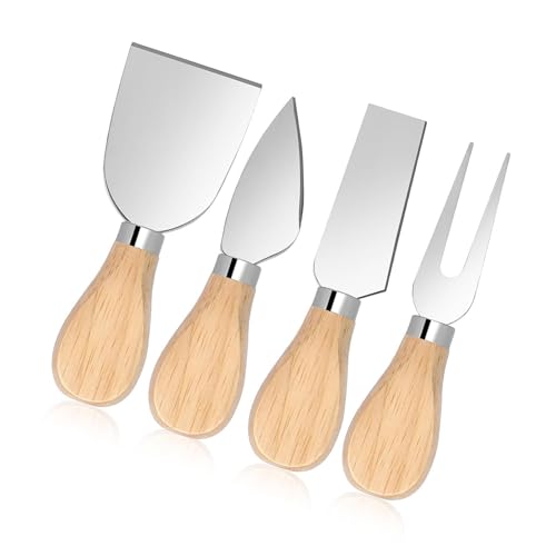 Generic - طقم سكاكين جبنة استانلس ستيل مع مقابض خشب البلوط - مثالي لتقطيع الجبنة والمخبوزات - من جينيريك