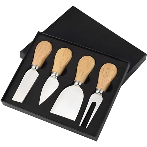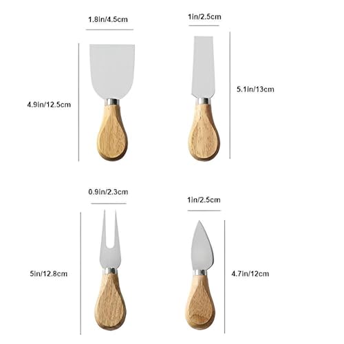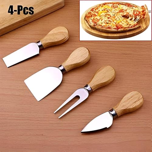- الجودة: تتضمن المجموعة ذات المقبض الخشبي أربع قطع: سكين تقشير ضيق وسكين جبن مسطح وسكين بارميزان وشوكة جبن.