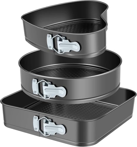 Generic - طقم صواني تشيز كيك 3 قطع سبرينج فورم دائرية مربعة الشكل غير لاصقة قابلة للازالة للخبز المنزلي 24 26 28 سم على الطراز المصري