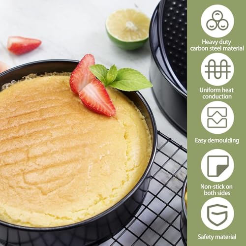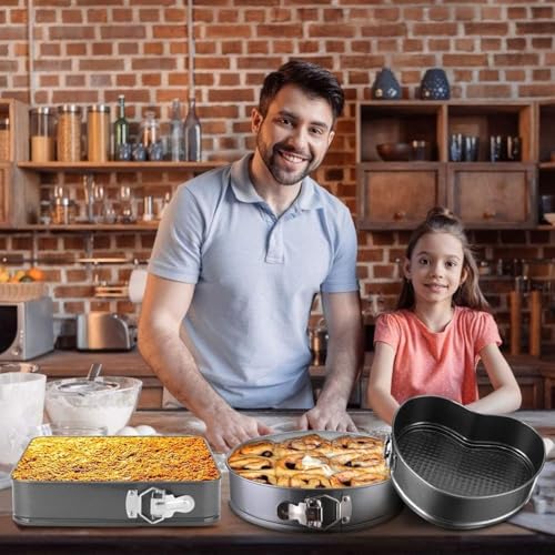 - 【تصميم نظام المشبك】كل صينية مجهزة بآلية مشبك سهلة الاستخدام تسمح بتحرير كعكة الجبن والكعك بدون مجهود، مما يمنع الكسر أو الالتصاق، وتضمن الحفاظ على حلوياتك على شكلها ومظهرها المقصود في كل مرة.
