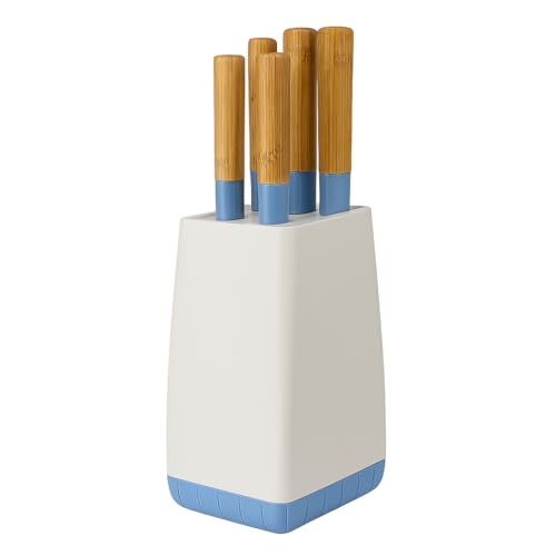 Generic - طقم سكاكين شيف من فولاذ مقاوم للصدأ، أدوات مائدة حادة للغاية بمقبض قوي مع حامل، 5 قطع (أزرق)