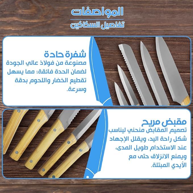 - سهلة التنظيف والصيانة - شفرات منخفضة الصيانة تقاوم البقع وسهلة التنظيف، مما يجعل هذه المجموعة خيارًا عمليًا للاستخدام اليومي في المطبخ.